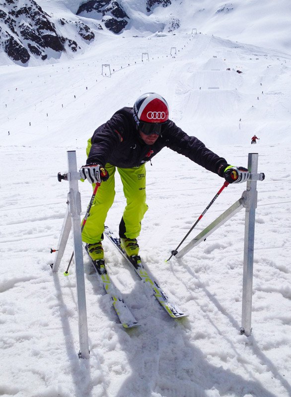 THE TRAINING AND PUSH START POLES from Settele Startsystems combine the advantages of a EASY TO HAND TRAINING POSSIBILITY with the COMFORT of a LIGHT, TRANSPORT and STABLE ALUMINUM CONSTRUCTION. Thus it offers the best conditions to prepare for the starting sequence of a ski or snowboard cross competition. The poles, perfect for wax and glide tests as well as acceleration measurements.