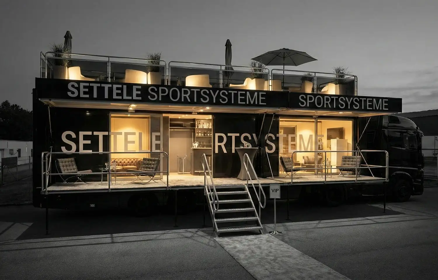 Der Settele Event Truck ist eine vollständig ausgestattete mobile Infrastruktur für Großveranstaltungen. Auf zwei Etagen bietet er Räumlichkeiten für Rennleitung, FIS-Jury, Zeitmess-Zentrale, TV-Regie und VIP-Hospitality. Im Einsatz bei FIS-Weltcup-Serien und internationalen Meisterschaften.